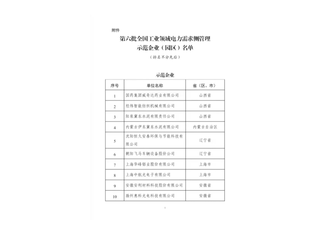 全國工業(yè)領(lǐng)域電力需求側(cè)管理示范企業(yè)