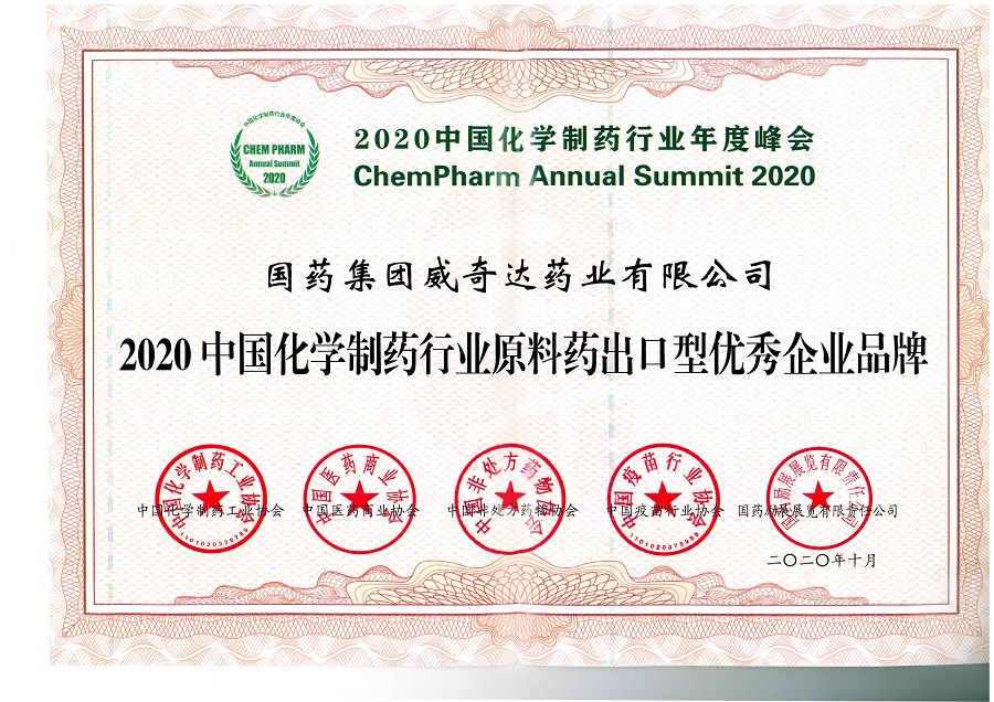 中國化學(xué)制藥行業(yè)原料藥出口型優(yōu)秀企業(yè)品牌
