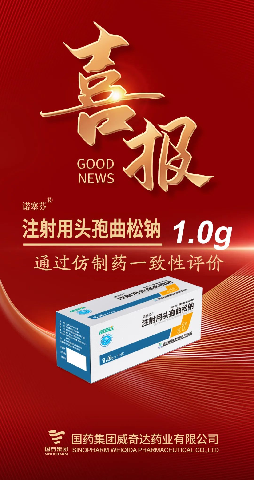 國(guó)藥威奇達(dá)始終秉持“護(hù)佑生命、關(guān)愛(ài)健康”的企業(yè)理念,注射用頭孢曲松鈉(1.0g)通過(guò)一致性評(píng)價(jià),將為患者提供更多質(zhì)優(yōu)價(jià)廉的用藥選擇。下一步,公司將繼續(xù)堅(jiān)持創(chuàng)新驅(qū)動(dòng),持續(xù)加大研發(fā)投入,優(yōu)化生產(chǎn)工藝,嚴(yán)格質(zhì)量標(biāo)準(zhǔn),為增進(jìn)人民福祉和推進(jìn)健康中國(guó)建設(shè)作出新的更大的貢獻(xiàn)!