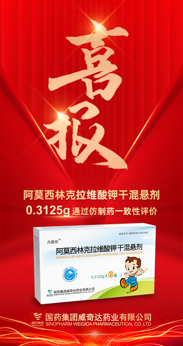 近日,國(guó)藥威奇達(dá)收到國(guó)家藥品監(jiān)督管理局核準(zhǔn)簽發(fā)的《藥品補(bǔ)充申請(qǐng)批準(zhǔn)通知書(shū)》,批準(zhǔn)阿莫西林克拉維酸鉀干混懸劑(0.3125g)通過(guò)仿制藥質(zhì)量和療效一致性評(píng)價(jià)。公司成為國(guó)內(nèi)該品規(guī)第二家過(guò)評(píng)企業(yè)(根據(jù)CDE網(wǎng)站數(shù)據(jù))。