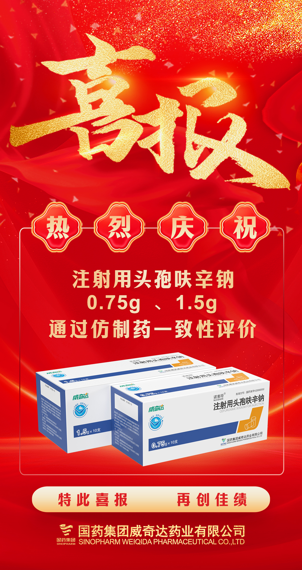 近日,國藥威奇達(dá)收到國家藥品監(jiān)督管理局核準(zhǔn)簽發(fā)的《藥品補(bǔ)充申請批準(zhǔn)通知書》,批準(zhǔn)注射用頭孢呋辛鈉(0.75g,1.5g)通過仿制藥質(zhì)量和療效一致性評價(jià)。