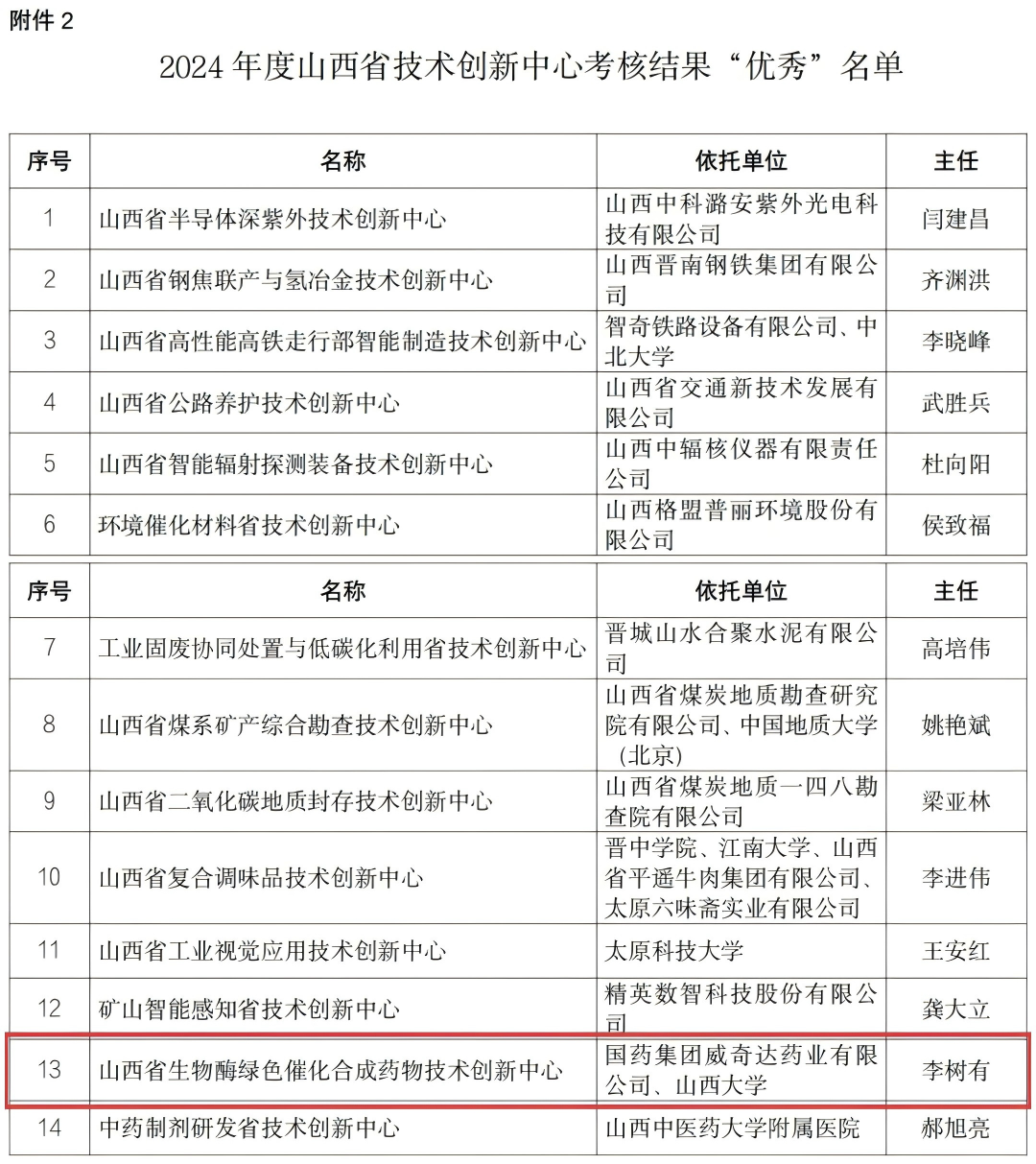 近日,山西省科學(xué)技術(shù)廳發(fā)布通知,對(duì)2024年度考核優(yōu)秀的省重點(diǎn)實(shí)驗(yàn)室和省技術(shù)創(chuàng)新中心予以通報(bào)表?yè)P(yáng),由國(guó)藥威奇達(dá)與山西大學(xué)共建的“山西省生物綠色催化合成藥物技術(shù)創(chuàng)新中心”名列其中。