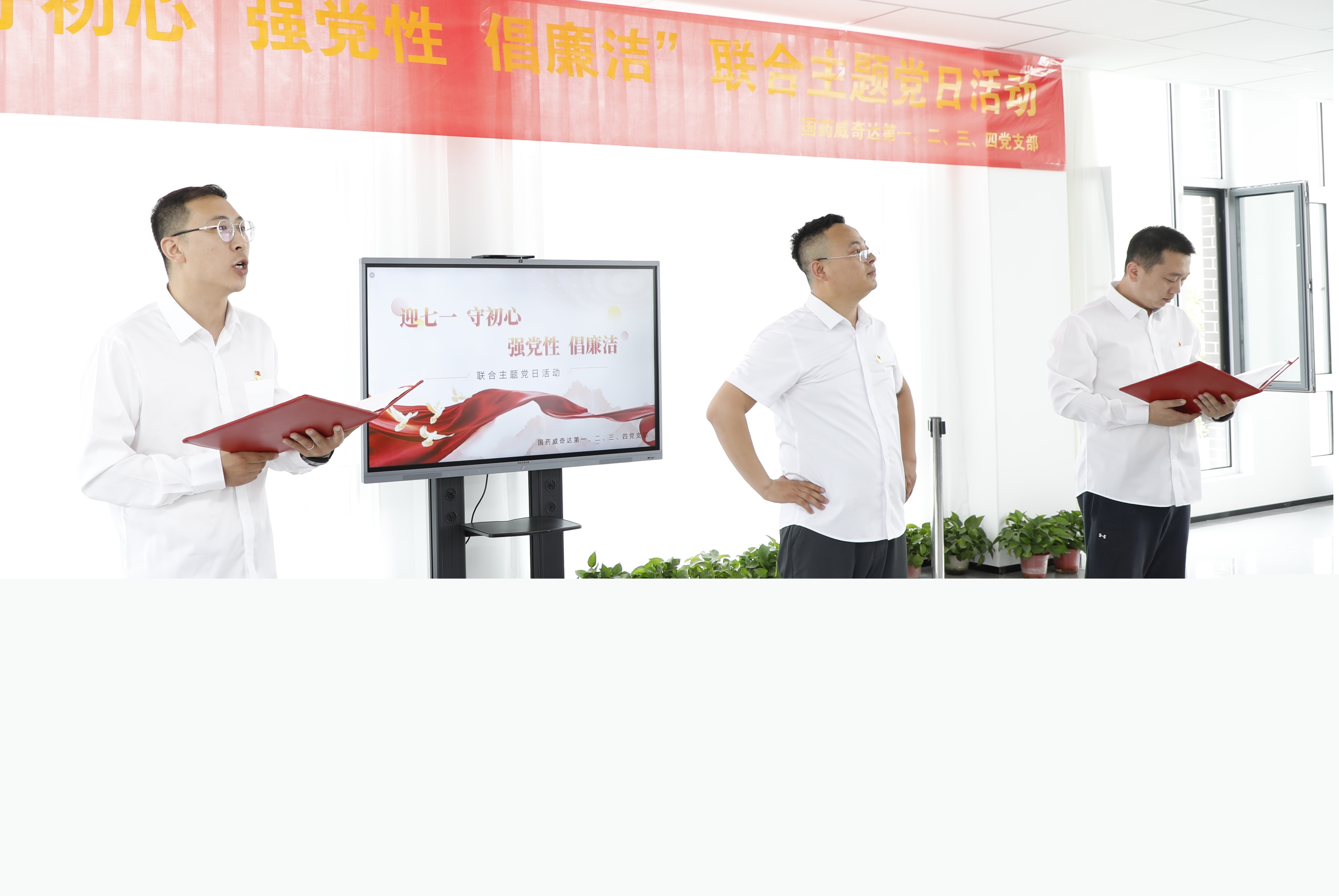為喜迎建黨103周年,慶祝中華人民共和國成立75周年,引導(dǎo)黨員干部堅定理想信念,強化紀(jì)律和規(guī)矩意識,筑牢反腐倡廉防線,進一步推動黨紀(jì)學(xué)習(xí)教育取得實效,國藥威奇達(dá)第一黨支部、第二黨支部、第三黨支部及第四黨支部于6月26日開展“ 迎七一 守初心 強黨性 倡廉潔”聯(lián)合主題黨日活動,黨員們用朗誦、歌唱、沉浸式黨課等方式表達(dá)對黨的赤誠之心和對祖國深深的熱愛,凝聚奮進新征程力量,營造風(fēng)清氣正的干事創(chuàng)業(yè)氛圍。
