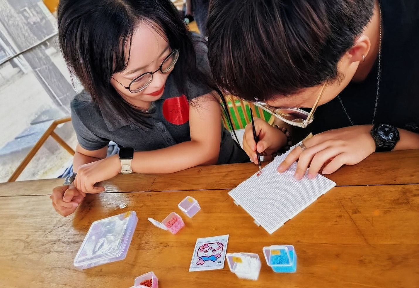 手工DIY與桌游環(huán)節(jié)開啟后,青年們迅速找到志同道合的伙伴。在拼豆豆區(qū)域,大家全神貫注,一顆顆小豆豆在他們手中逐漸拼湊出各種可愛造型,展現(xiàn)出無限的創(chuàng)意。狼人殺桌前,眾人憑借敏銳的觀察力與出色的推理能力,在你來我往的言語交流中探尋真相。撲克牌游戲桌旁,青年們一邊輕松地玩著游戲,一邊嘮著家常,距離在不經(jīng)意間迅速拉近。